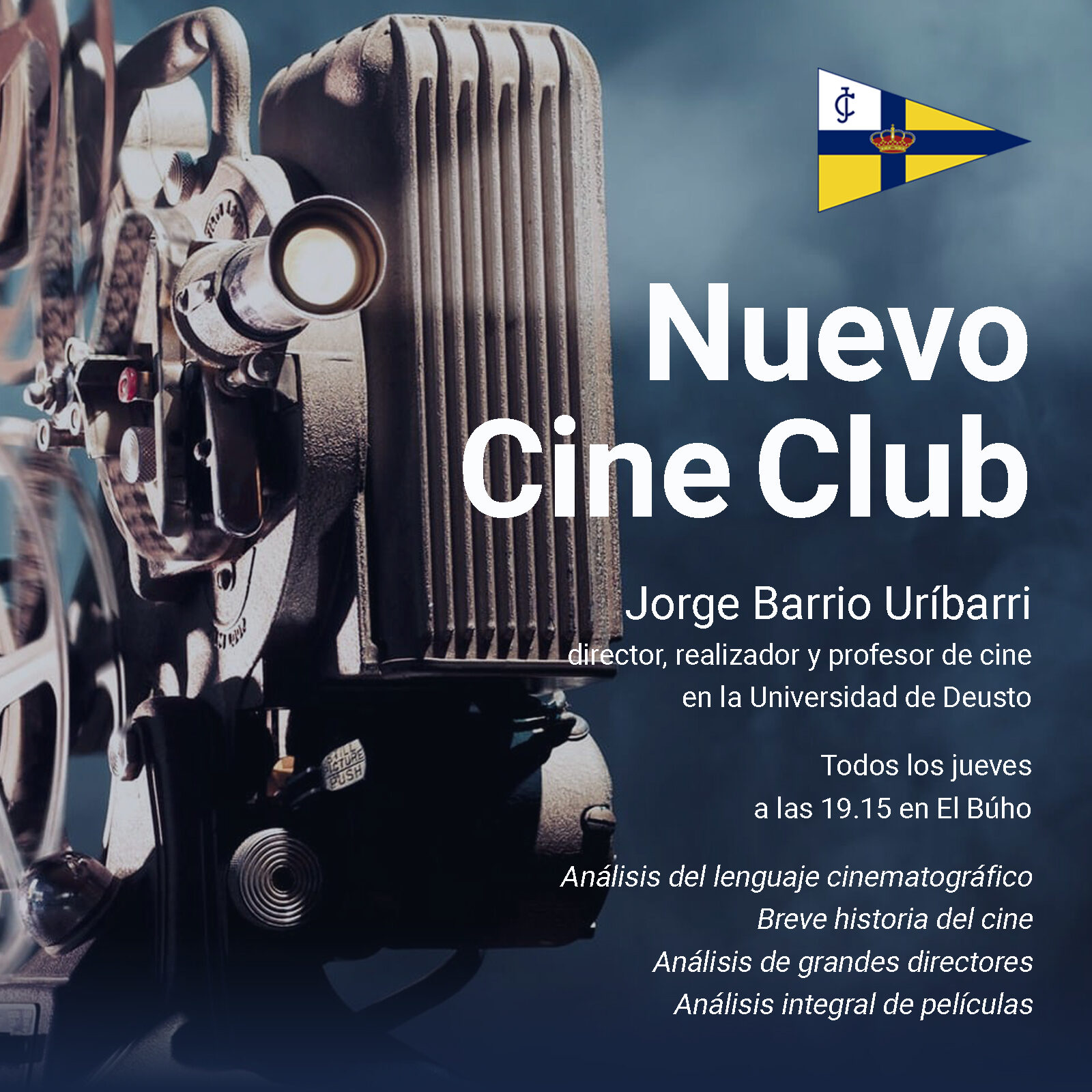 Jorge Barrio Uríbarri, profesor de cine en la Universidad de Deusto, productor, realizador y secretario de Cineclub Fas en Bilbao (primer cine fórum de Bilbao, 1959), será el encargado de dirigir la actividad. El objetivo es crear un grupo de Socios que compartan un rato ameno, divertido y también formativo alrededor del cine.