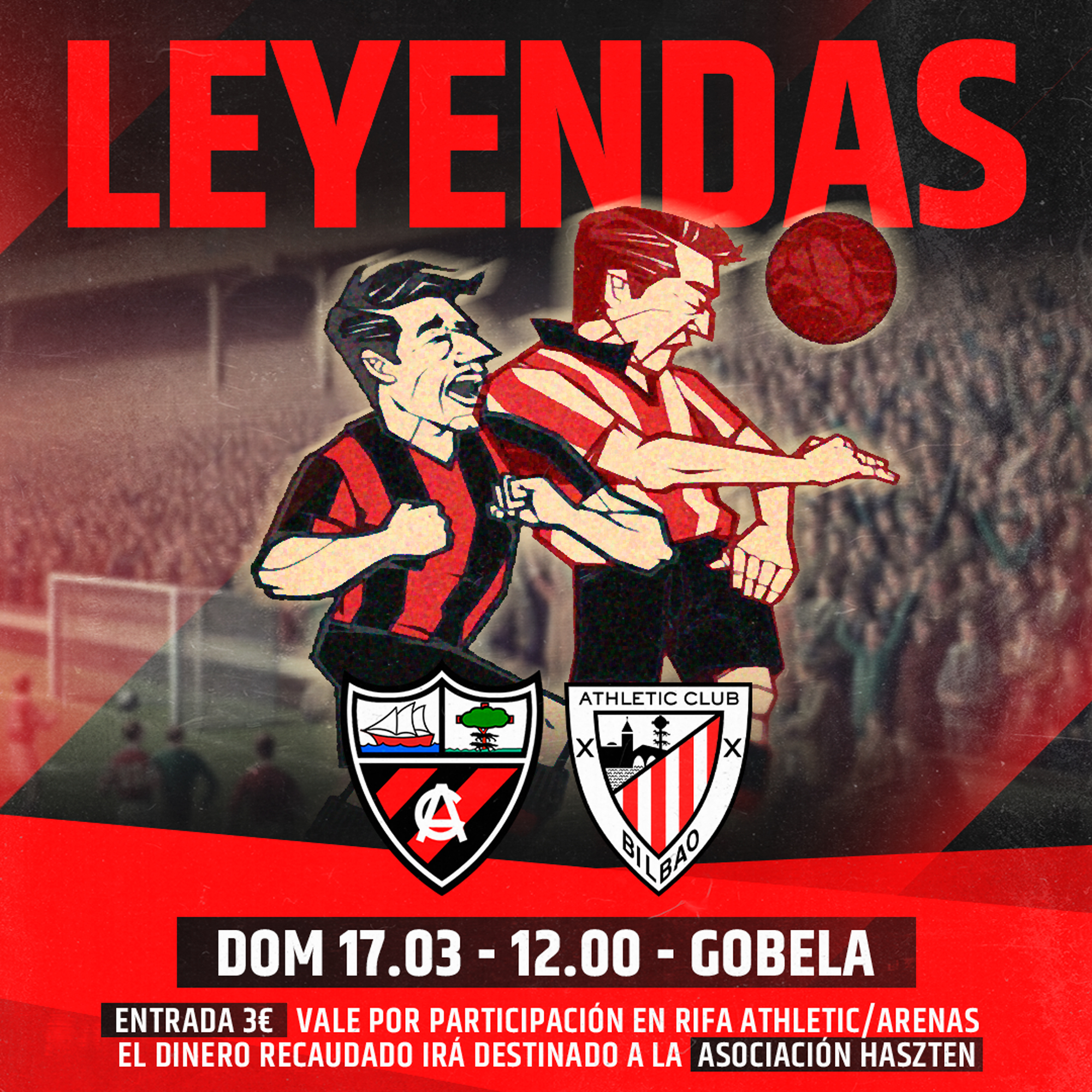 El Arenas Club organizará un encuentro amistoso de carácter solidario en favor de la Asociación Haszten, asociación especializada en deporte adaptado que colabora con el Real Club Jolaseta en el programa ‘JOLASETA +INCLUSIVO’. El partido se disputará el próximo domingo 17 de marzo a las 12.00 horas en Gobela, y enfrentará a los equipos veteranos del Arenas Club y el Athletic Club. El precio de la entrada será de 3€, cuya recaudación íntegra estará destinada a la Asociación Haszten.