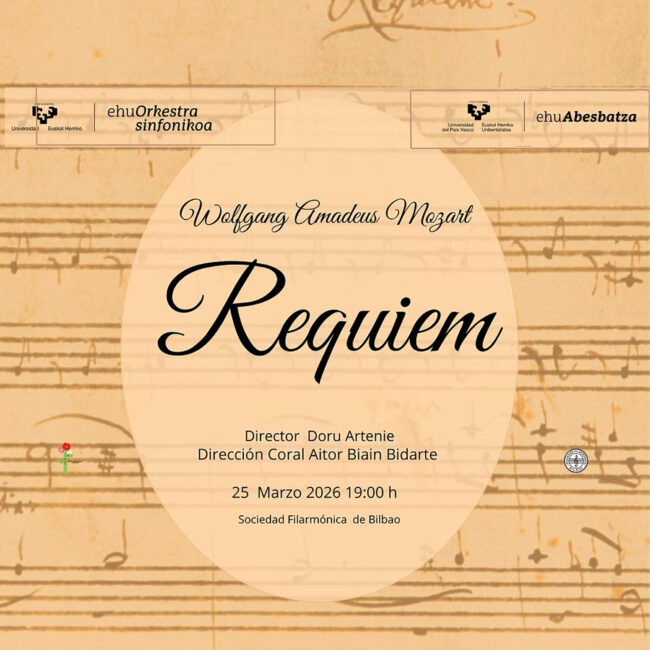 El próximo miércoles 25 de marzo a las 19.00 horas en la Sociedad Filarmónica de Bilbao, tendrá lugar el ‘Requiem de Mozart’, concierto solidario a cargo de la Orquesta Sinfónica de la UPV, bajo la dirección de Doru Artenie. Toda la recaudación de este concierto se destinará a las becas de investigación sobre tumores infrecuentes…