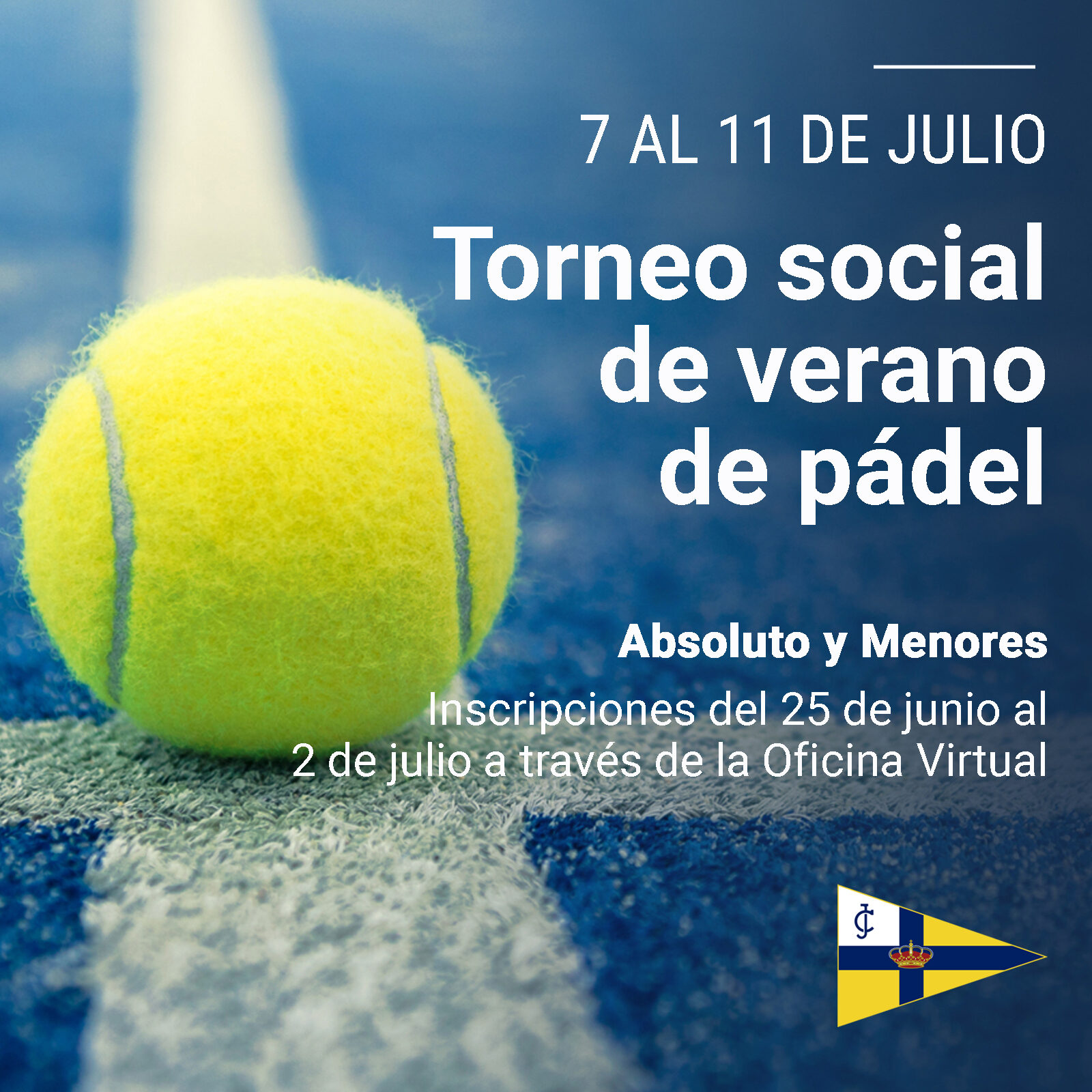 Del 7 al 11 de julio las pistas de pádel del Club acogerán el último torneo social de la temporada 24/25, Torneo Social de Verano en absoluto y menores. Las inscripciones pueden realizarse a través de la Oficina Virtual a partir del 25 de junio y hasta el 2 de julio. Los jugadores podrán inscribirse máximo a 2 categorías. Finalizaremos con un acto social de entrega de premios.